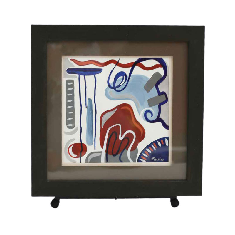 18 ¾ x 18 ¾ x 1 ¼ Abstract acrylic on canvas board Upcycled frame- double matted